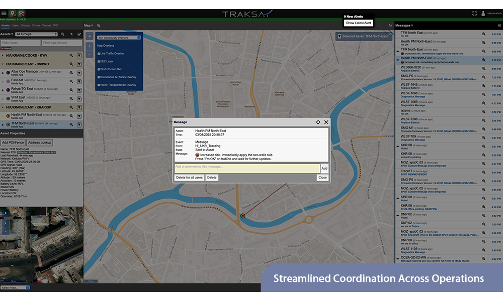 As a network-agnostic solution, Traksat Platform empowers humanitarian organisations with real-time visibility, operational efficiency, and enhanced safety for teams and assets. Traksat’s tracking platform provides live geolocation data for personnel, vehicles, and equipment in the field and helps to streamline coordination with its seamless integration over cellular and satellite networks. Moreover, Traksat Platform supports data-driven decision-making with its detailed reporting tools that provide insights into mission performance, optimise resource allocation, and ensure compliance with operational standards. Traksat Platform simplifies the logistics of aid delivery with IoT-enabled tracking; empowers search & rescue (SAR) teams to respond faster to emergencies with precise GPS tracking and geozoning alerts; and streamlines camp operations with multi-user group communications and scheduling tools.